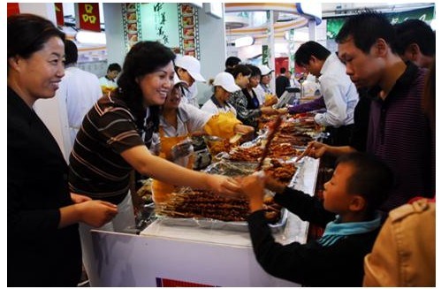 味香色美,誘惑難抵,充分調動人們的視覺、胃覺、嗅覺,德大公司美味誘人的各種產品倍受喜愛,展區前擠滿了顧客??诟絮r嫩,老少皆宜,各個年齡段的顧客大包小包的購買德大商品帶回家。選德大健康食品,美味與親朋共分享。我公司在農博會上成果顯著,日銷售額過萬,多種商品以脫銷之勢熱賣。展位前始終擠滿熱情購買的人們,德大商品之受歡迎由此可見。